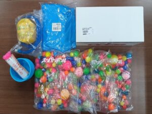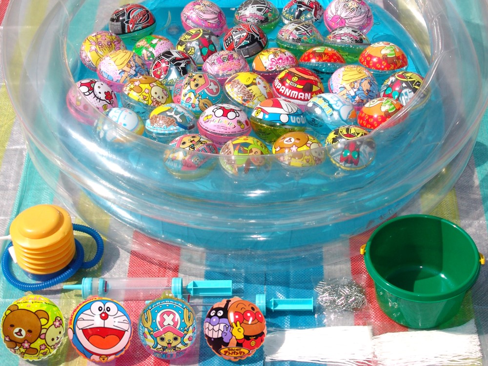 ビニール水ヨーヨー×100、コヨリ×200、釣り金具×100、